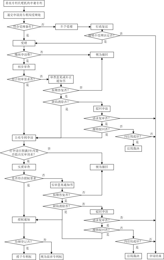 1、國(guó)內(nèi)專利申請(qǐng)所需文件及資料 申請(qǐng)發(fā)明專利的,申請(qǐng)文件應(yīng)當(dāng)包括:發(fā)明專利請(qǐng)求書、說明書(必要時(shí)應(yīng)當(dāng)有附圖)、權(quán)利要求書、摘要及其附圖,各一式兩份。涉及氨基酸或者核苷酸序列 的發(fā)明專利申請(qǐng),說明書中應(yīng)包括該序列表,并把該序列表作為說明書的一個(gè)單獨(dú)部分提交,同時(shí)還應(yīng)提交符合國(guó)家知識(shí)產(chǎn)權(quán)局規(guī)定的記載有該序列表的光盤或軟 盤。 申請(qǐng)實(shí)用新型專利的,申請(qǐng)文件應(yīng)當(dāng)包括:實(shí)用新型專利請(qǐng)求書、說明書、說明書附圖、權(quán)利要求書、摘要及其附圖,各一式兩份。 申請(qǐng)外觀設(shè)計(jì)專利的,申請(qǐng)文件應(yīng)當(dāng)包括:外觀設(shè)計(jì)專利請(qǐng)求書、圖片或者照片,各一式兩份。要求保護(hù)色彩的,還應(yīng)當(dāng)提交彩色圖片或者照片一式兩份。提交 圖片的,兩份均應(yīng)為圖片,提交照片的,兩份均應(yīng)為照片,不得將圖片或照片混用。如對(duì)圖片或照片需要說明的,應(yīng)當(dāng)提交外觀設(shè)計(jì)簡(jiǎn)要說明,一式兩份。 2、如何撰寫技術(shù)交底書 一份技術(shù)交底書,清楚地描述該發(fā)明的技術(shù)方案和構(gòu)思,可按下述八個(gè)部分撰寫: 1)名稱; 2)技術(shù)領(lǐng)域; 3)現(xiàn)有技術(shù):引證與發(fā)明或?qū)嵱眯滦蛯@暾?qǐng)最接近的現(xiàn)有技術(shù)文件,并客觀指出背景技術(shù)中存在的問題和缺點(diǎn); 4)目的:應(yīng)針對(duì)背景技術(shù)中存在的問題,寫明由該申請(qǐng)的說明書所公開的技術(shù)方案所能解決的技術(shù)問題; 5)技術(shù)方案及發(fā)明要點(diǎn):寫明申請(qǐng)人對(duì)其要解決的技術(shù)問題所采取的技術(shù)措施的集合,是該發(fā)明或?qū)嵱眯滦蜕暾?qǐng)的核心部分; 6)有益效果:有根據(jù)地寫明由本發(fā)明或?qū)嵱眯滦偷募夹g(shù)特征帶來的,或者是由所述的技術(shù)特征必然產(chǎn)生的與現(xiàn)有技術(shù)相比所具有的有益效果; 7)附圖及其簡(jiǎn)要說明; 8)實(shí)現(xiàn)發(fā)明或?qū)嵱眯滦偷淖詈梅绞剑涸敿?xì)描述實(shí)施本發(fā)明或者實(shí)用新型的具體例子,尤其應(yīng)對(duì)本發(fā)明和實(shí)用新型區(qū)別于現(xiàn)有技術(shù)的技術(shù)特征及附加技術(shù)特征進(jìn)行足夠詳細(xì)的描述。 3、國(guó)內(nèi)專利申請(qǐng)業(yè)務(wù)流程圖